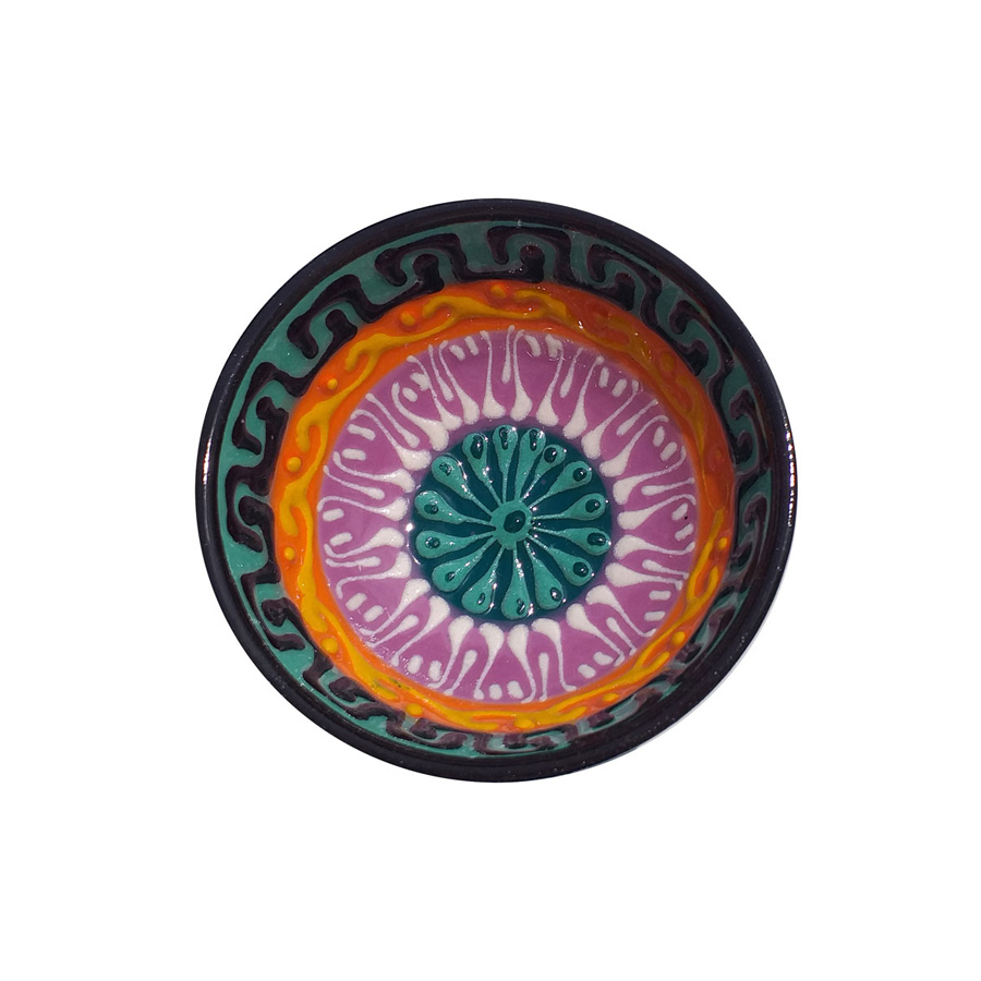 Handmade ceramic bowl, food and liquid safe. In order to maintain the quality and the colours of the item do not put it in the dishwasher. Dimensions: Diameter 8,5cm, Hight 4 cm. Due to the unicity of each item it's possible to find some variations between the photo and the object you'll receive.