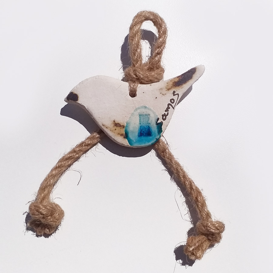 Greek hanging lucky charm. Ceramic, hand made, hand painted in local workshop. Dimensions of ceramic element: height 4,5 cm, length 7,5 cm