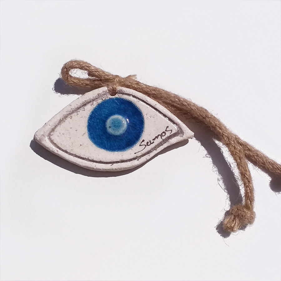 Greek hanging lucky charm. Ceramic, hand made, hand painted in local workshop. Dimensions of ceramic element: height 3,8 cm, length 7 cm