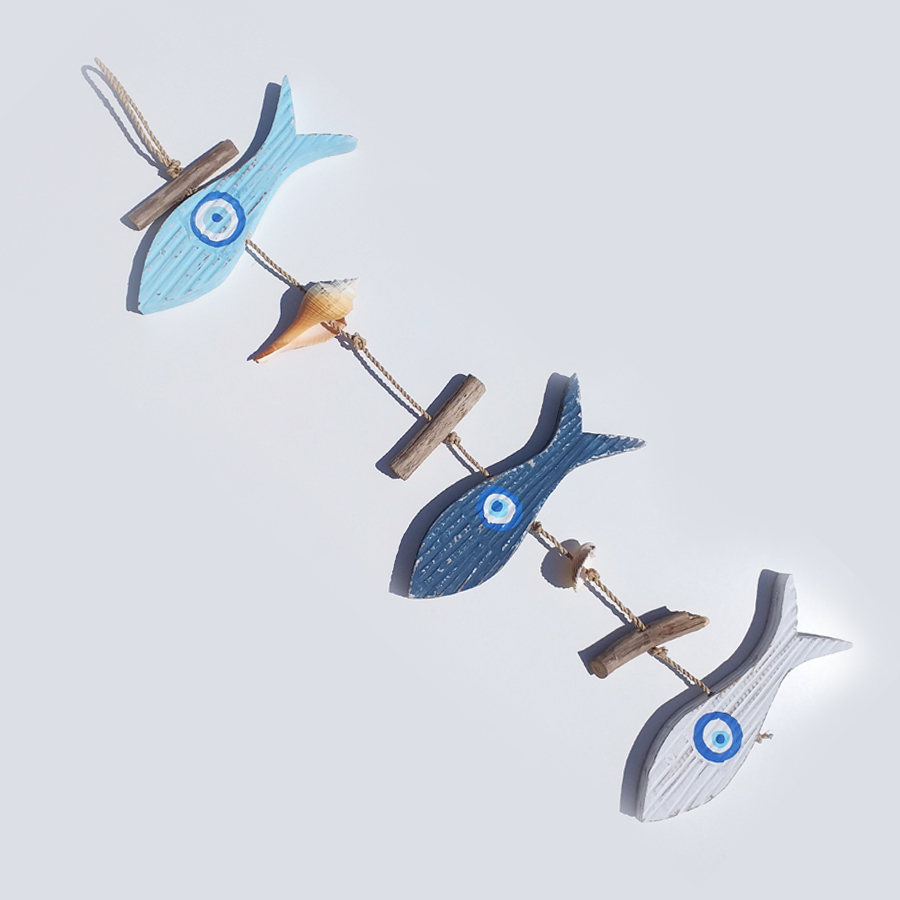 Girlande made of wooden elements and natural shells. Perfect for any nautical theme room, bathroom, .. Read More...
