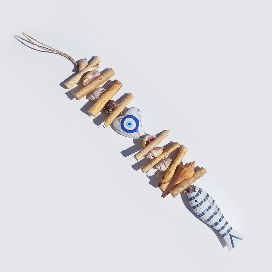 Girlande made of wooden elements and natural shells. Perfect for any nautical theme room, bathroom, .. Read More...