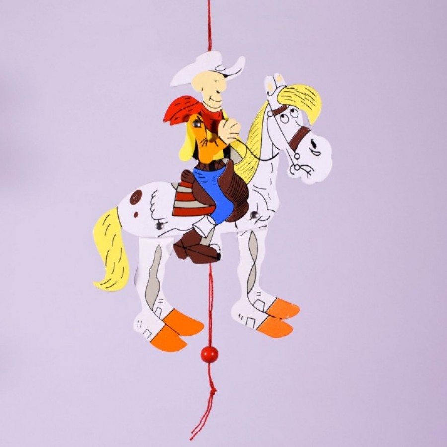 Vintage Lucky Luke cowboy wooden puppet with movable parts, suitable for kids and room decoration. .. Read More...