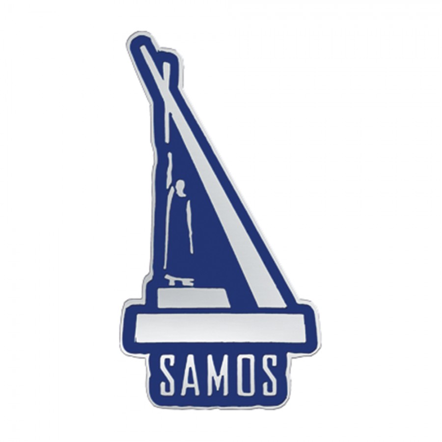 Enamel pin representing Pythagoras statue in Samos. Dimensions 3x1,5cm.