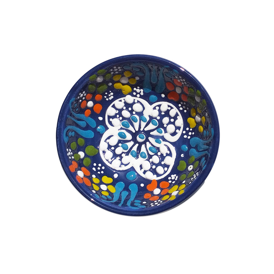 Handmade ceramic bowl, food and liquid safe. In order to maintain the quality and the colours of the item do not put it in the dishwasher. Dimensions: Diameter 8cm, Hight 3 cm. Due to the unicity of each item it's possible to find some variations between the photo and the object you'll receive.