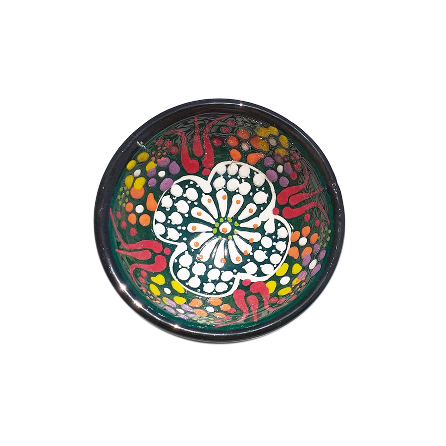 Handmade ceramic bowl, food and liquid safe. In order to maintain the quality and the colours of the item do not put it in the dishwasher. Dimensions: Diameter 8cm, Hight 3 cm. Due to the unicity of each item it's possible to find some variations between the photo and the object you'll receive.
