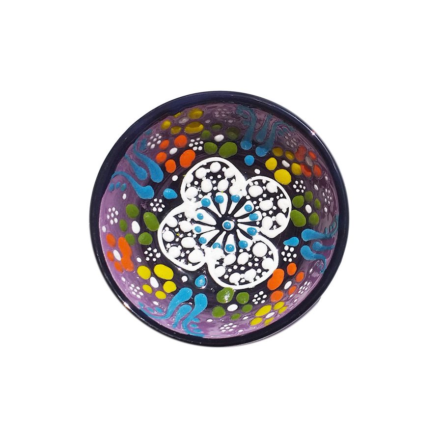 Handmade ceramic bowl, food and liquid safe. In order to maintain the quality and the colours of the item do not put it in the dishwasher. Dimensions: Diameter 8cm, Hight 3 cm. Due to the unicity of each item it's possible to find some variations between the photo and the object you'll receive.